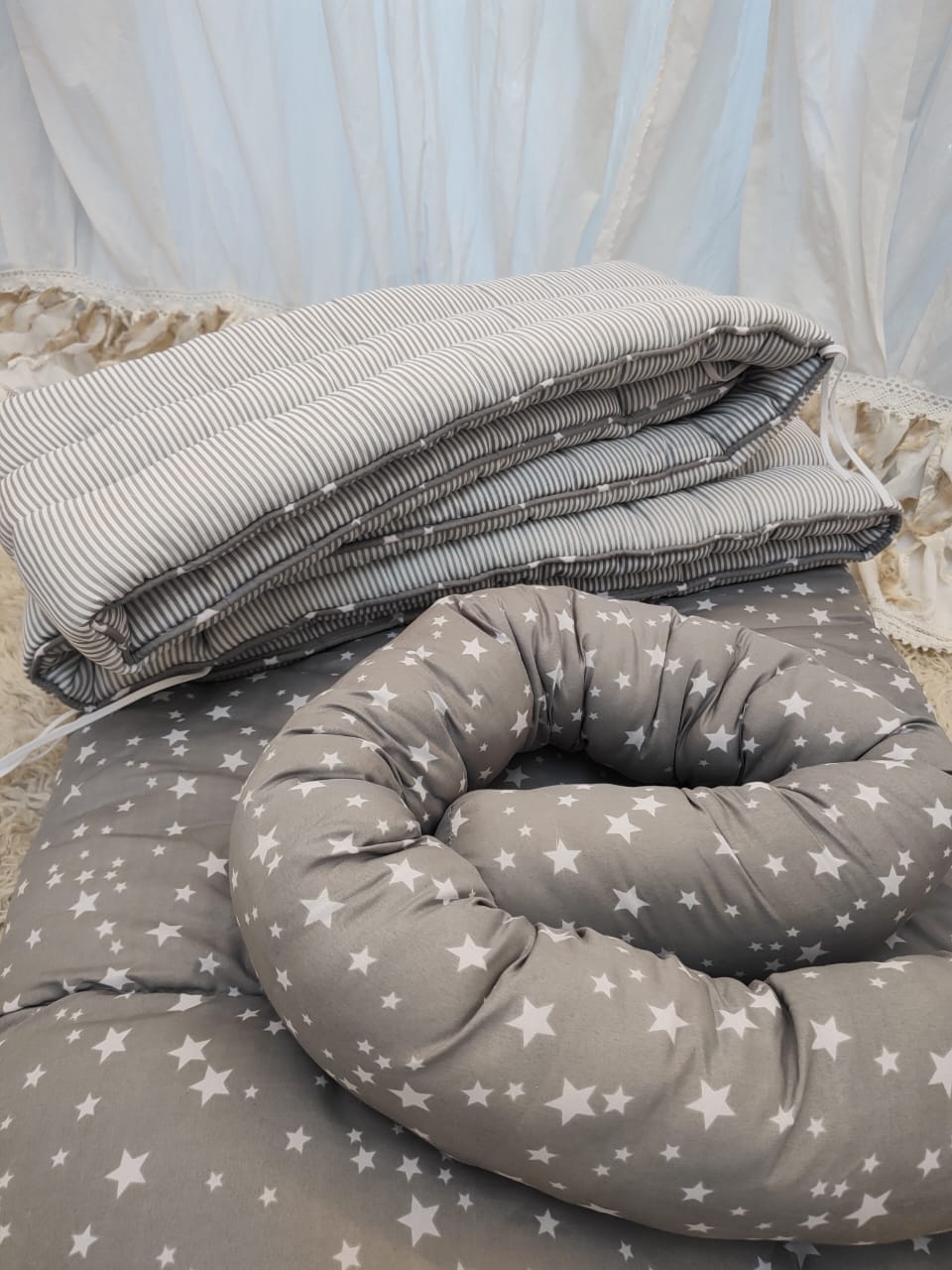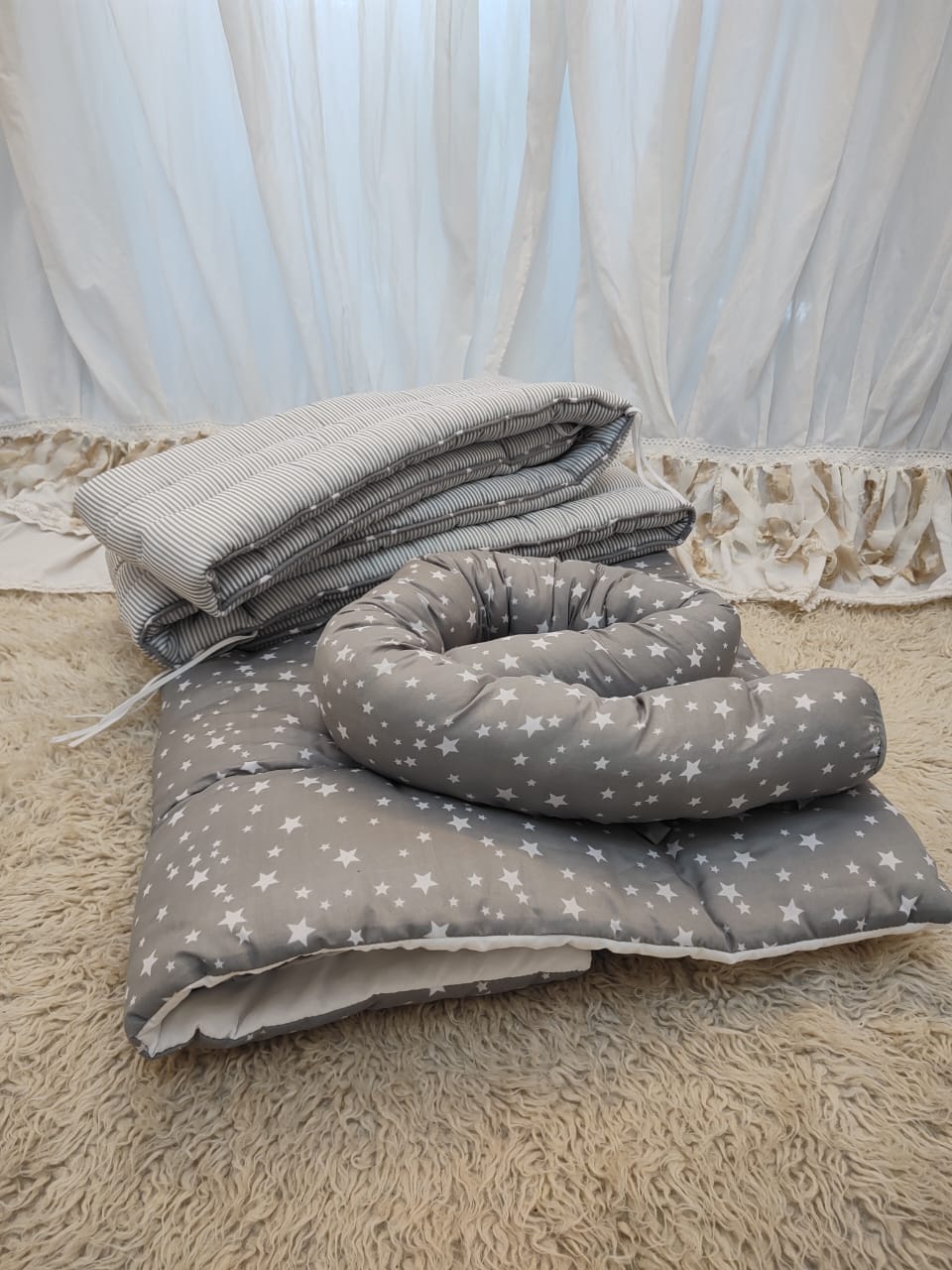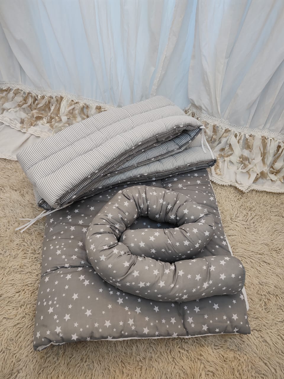 Cada set es único en stock y puede presentar algún detalle mínimo y casi imperceptible, lo que no afecta para nada su uso, comodidad ni belleza. Por eso tienen un precio especial para que puedas equipar la cuna sin gastar de más 💜