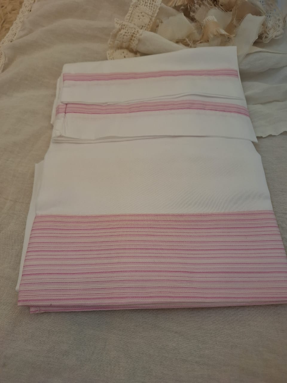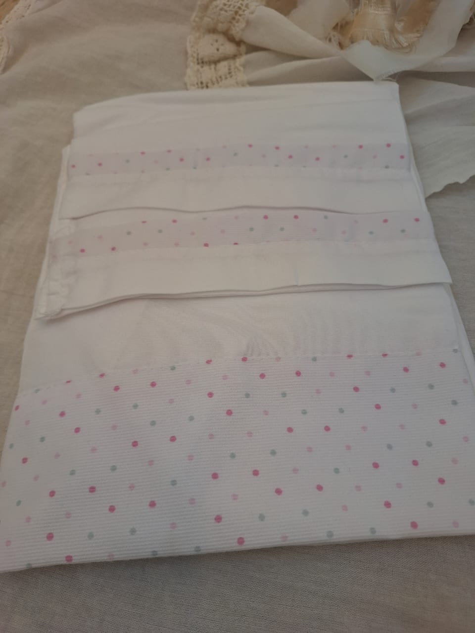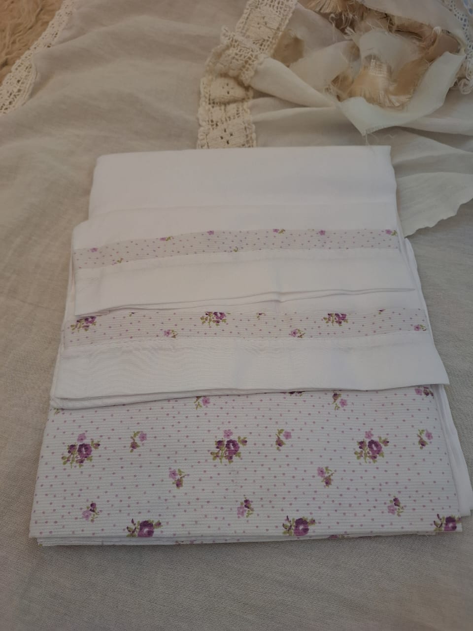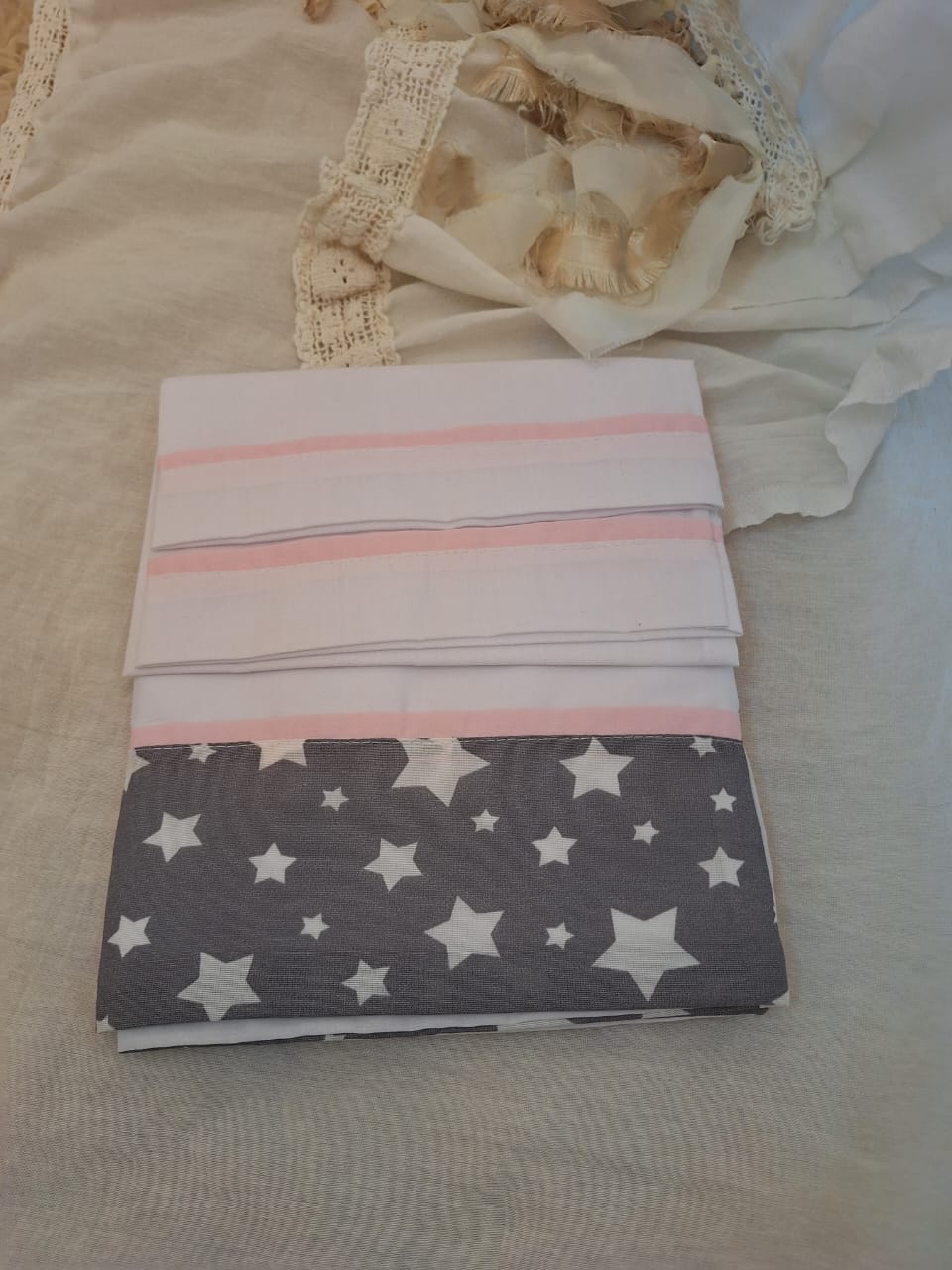 Son sábanas blancas con embozo estampado, disponibles en diferentes diseños delicados.
